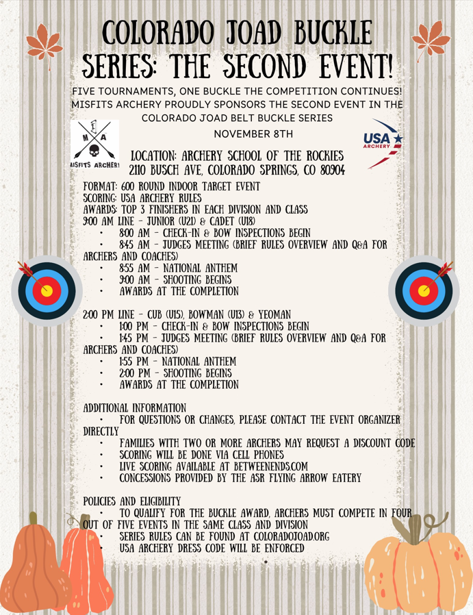 Misifts Archery proudly sponsors the first event in the Colorado JOAD Belt Buckle Series